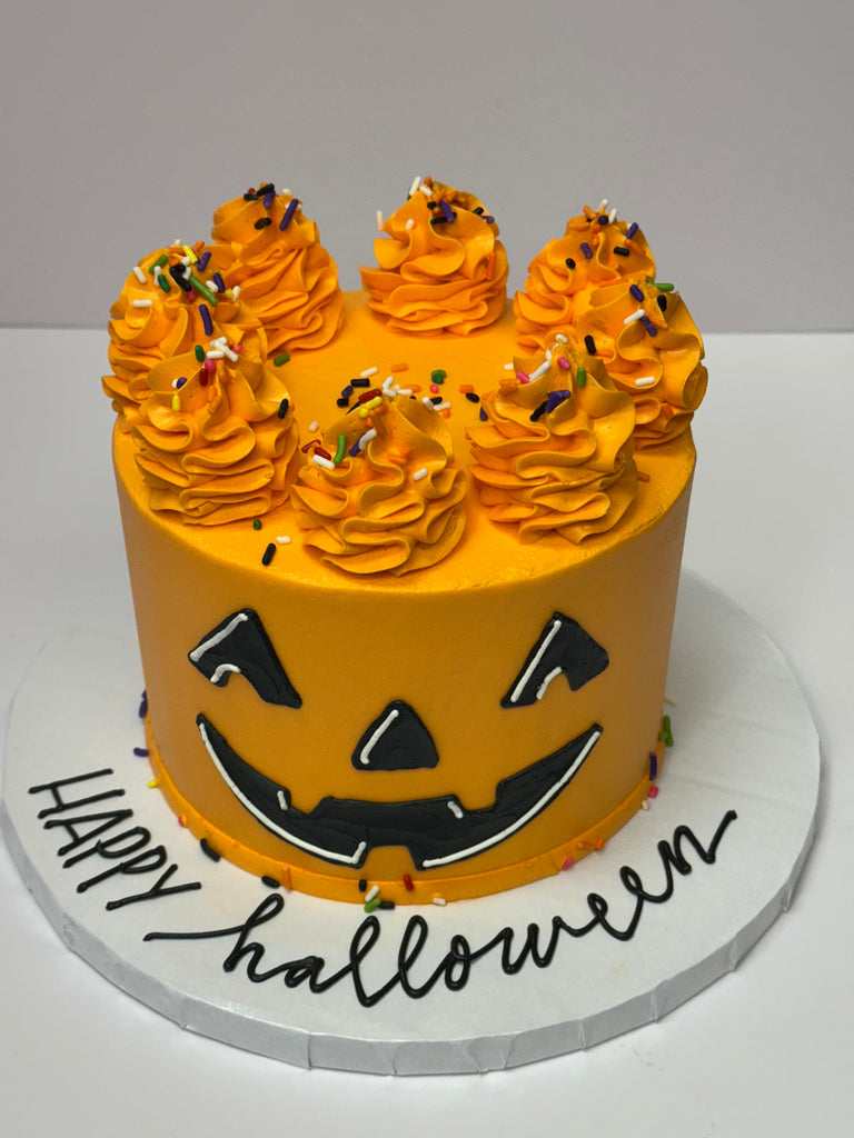 Check out our adorable NEW Sprinkle filled Jack-O-Lantern cake! This cake is perfect for your Halloween dessert table!